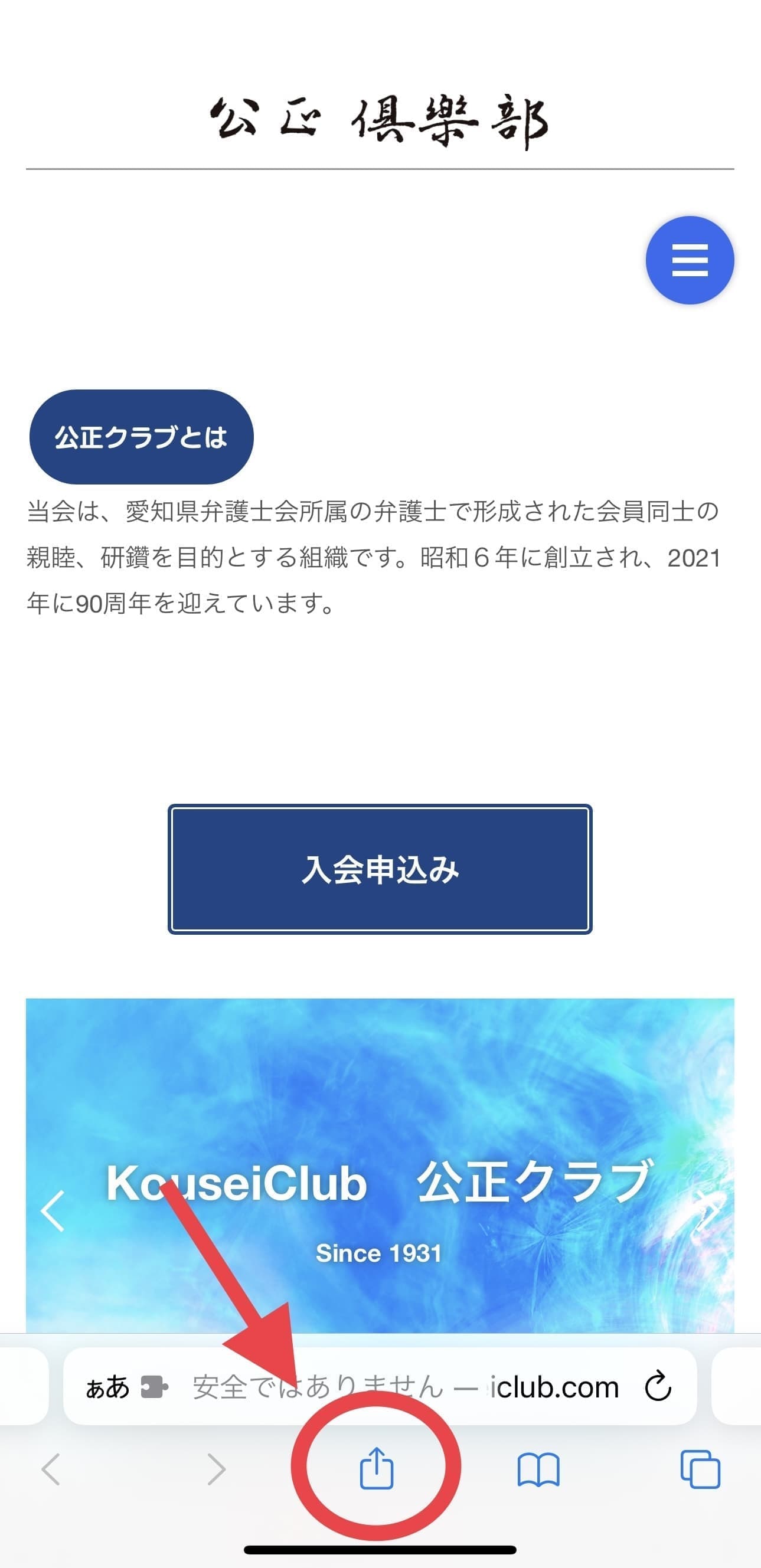 ⑴ 使用するブラウザアプリで公正クラブのHPを開く。