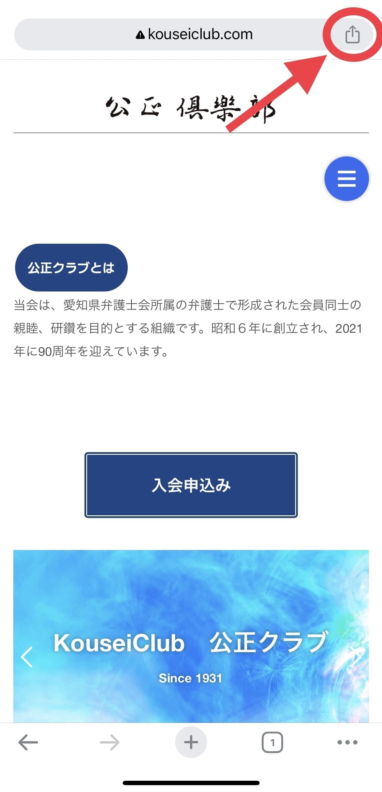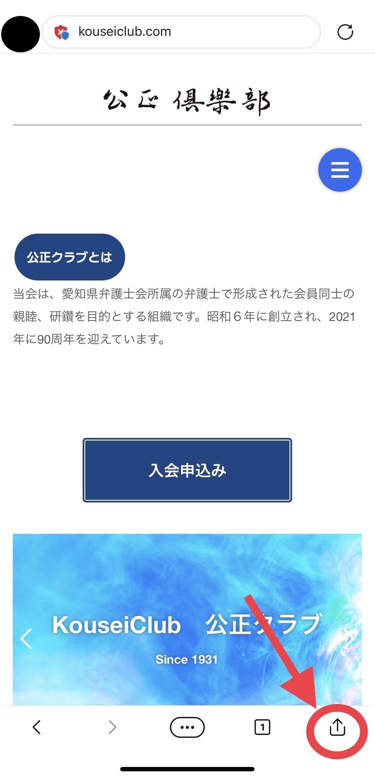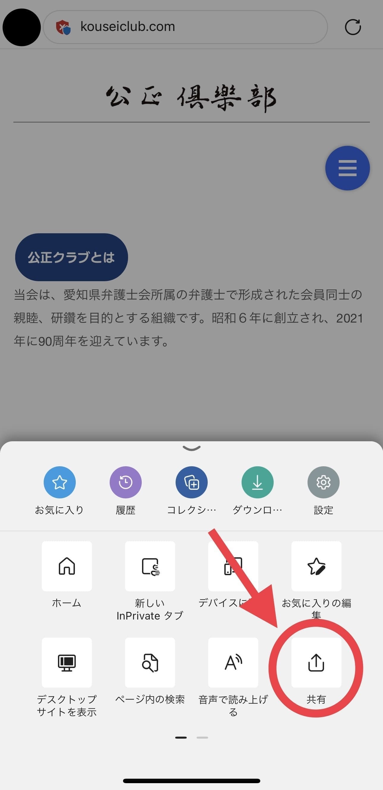 ⑴ 使用するブラウザアプリで公正クラブのHPを開く。