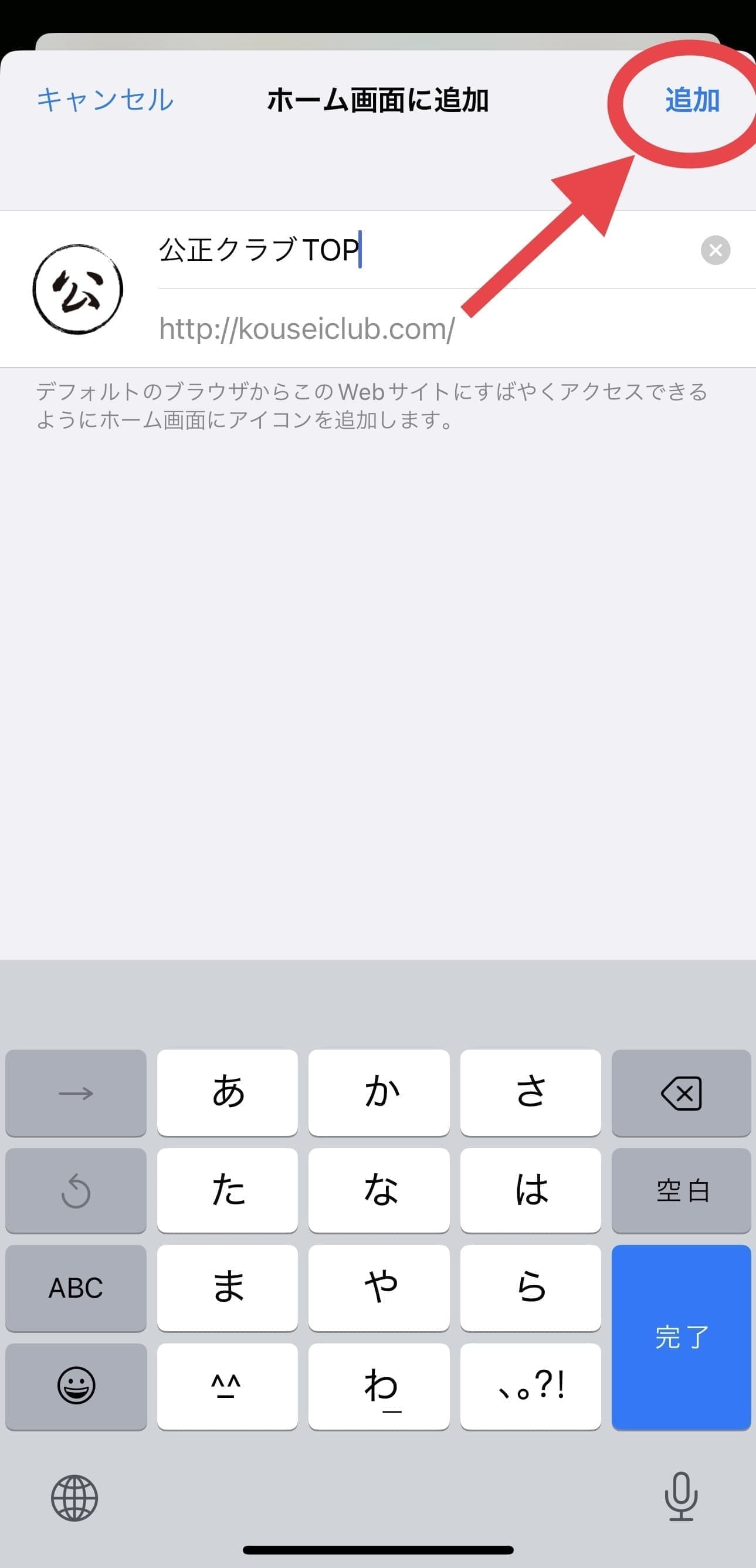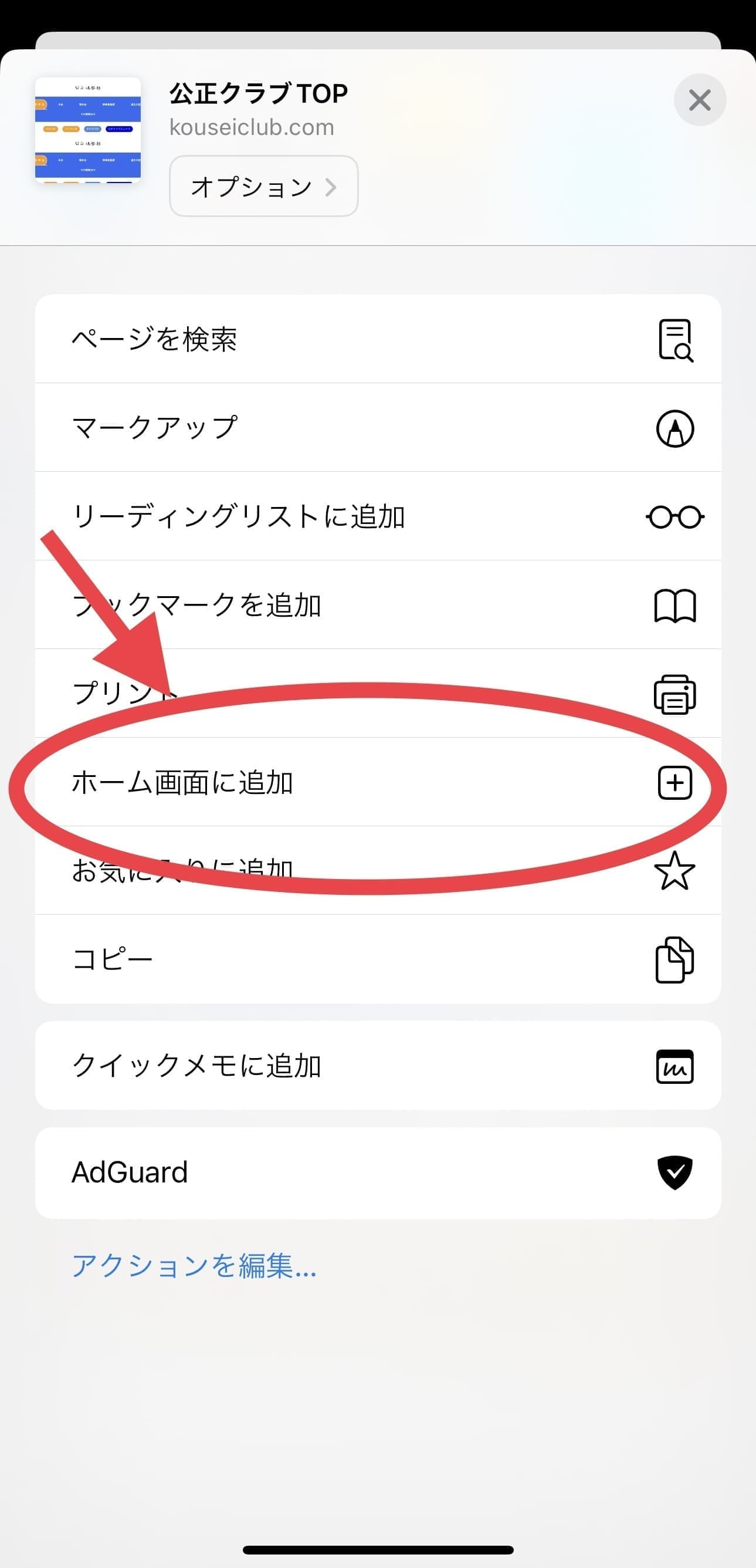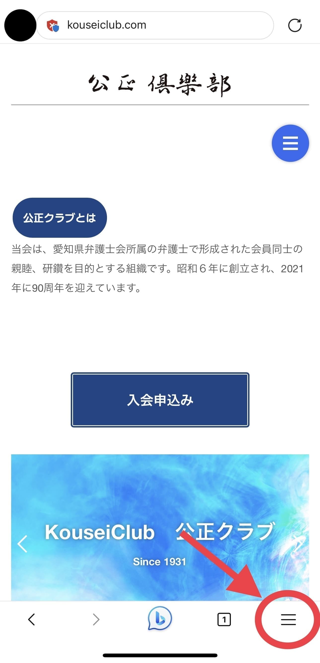 ⑴ 使用するブラウザアプリで公正クラブのHPを開く。